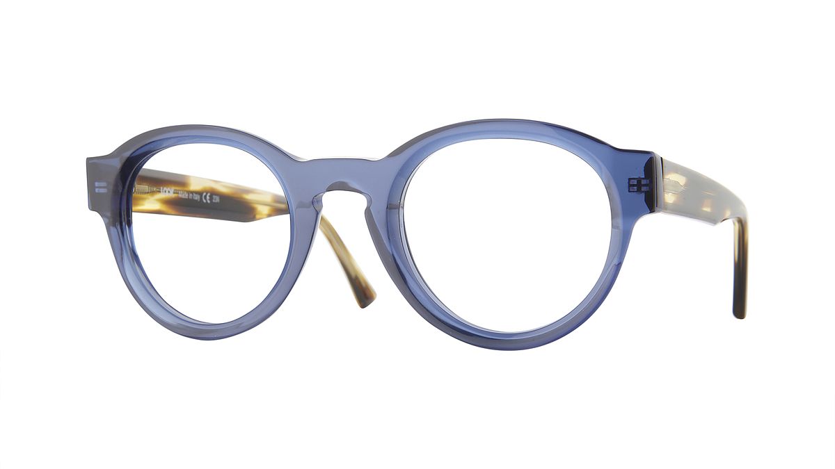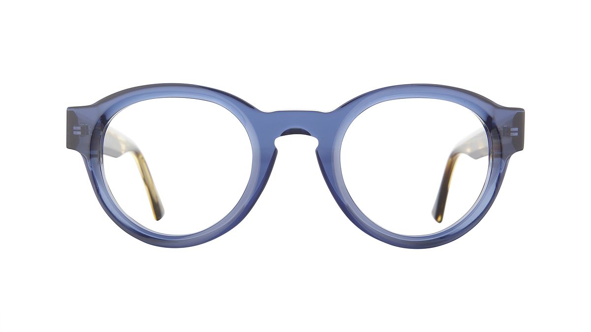 Farbe C4 - Glänzendes transparentes dunkelblaues Mittelteil und glänzende braune havannafarbene Bügel.