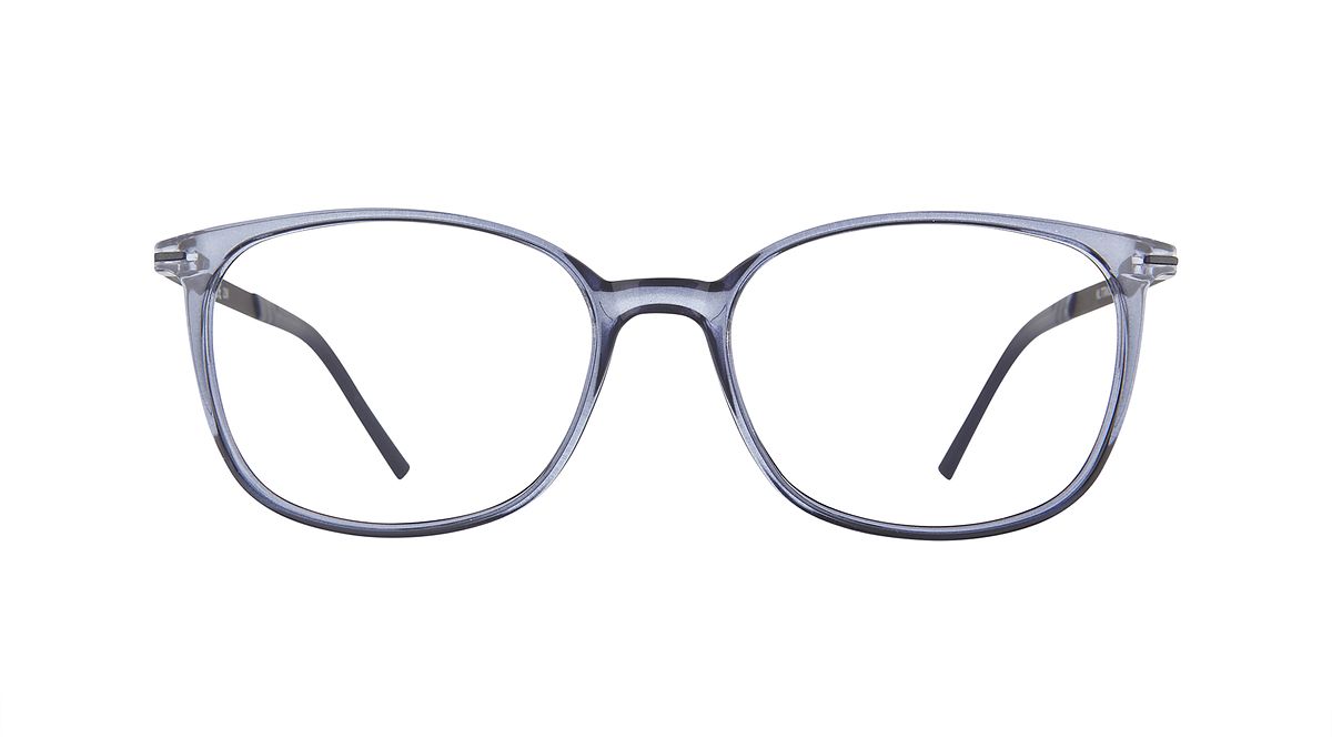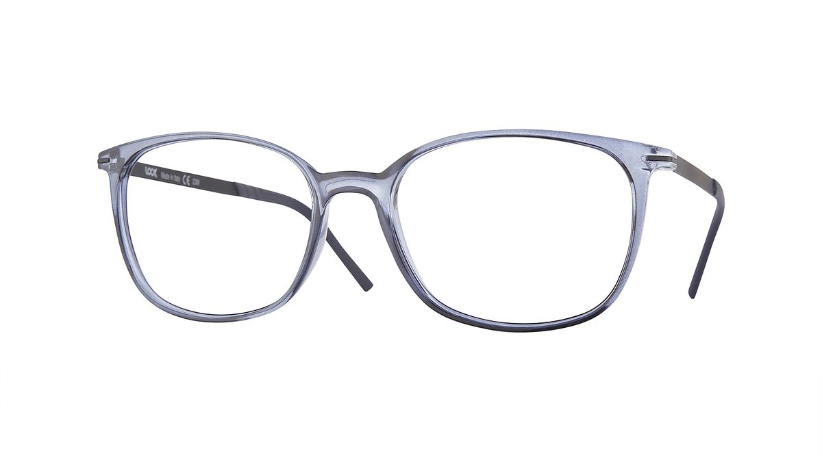 Farbe W3 - Glänzendes transparentes Mittelteil aus blauem Zuckerpapier. Mitternachtsblaue Bügel und passende Bügelenden.