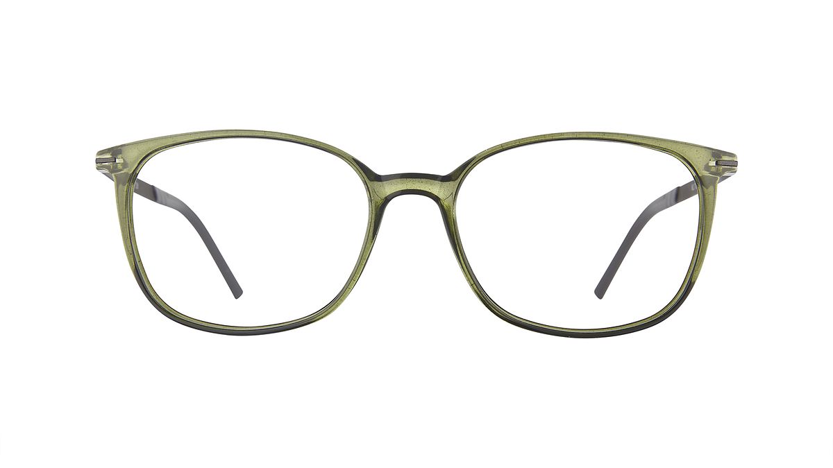 Farbe W4 - Glänzendes, transparentes, olivgrünes Mittelteil. Anthrazitgraue Bügel und passende Bügelenden.