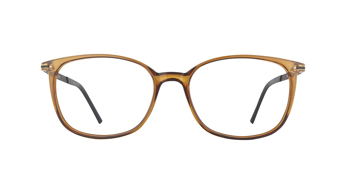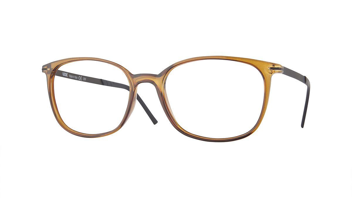 Farbe W5 - Mittelteil glänzend transparent karamellbraun. Bügel außen schwarz und innen rindenbraun. Passende Bügelenden.