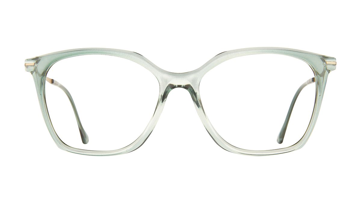 Farbe W3 - Hellgrüner Mittelteil mit transparentem, glänzendem Farbverlauf. Matte hellgoldene Bügel. Passende Bügelenden.