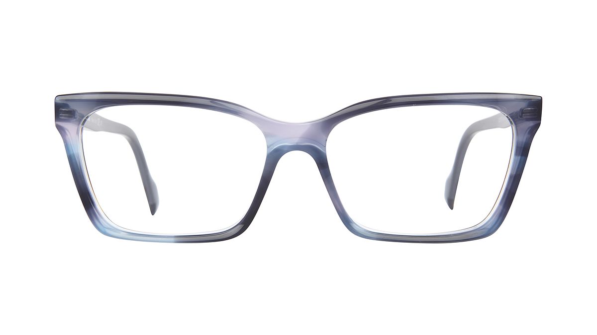 Farbe C3 - Hellblau/violett gemustertes Mittelteil. Denimblaue Bügel.