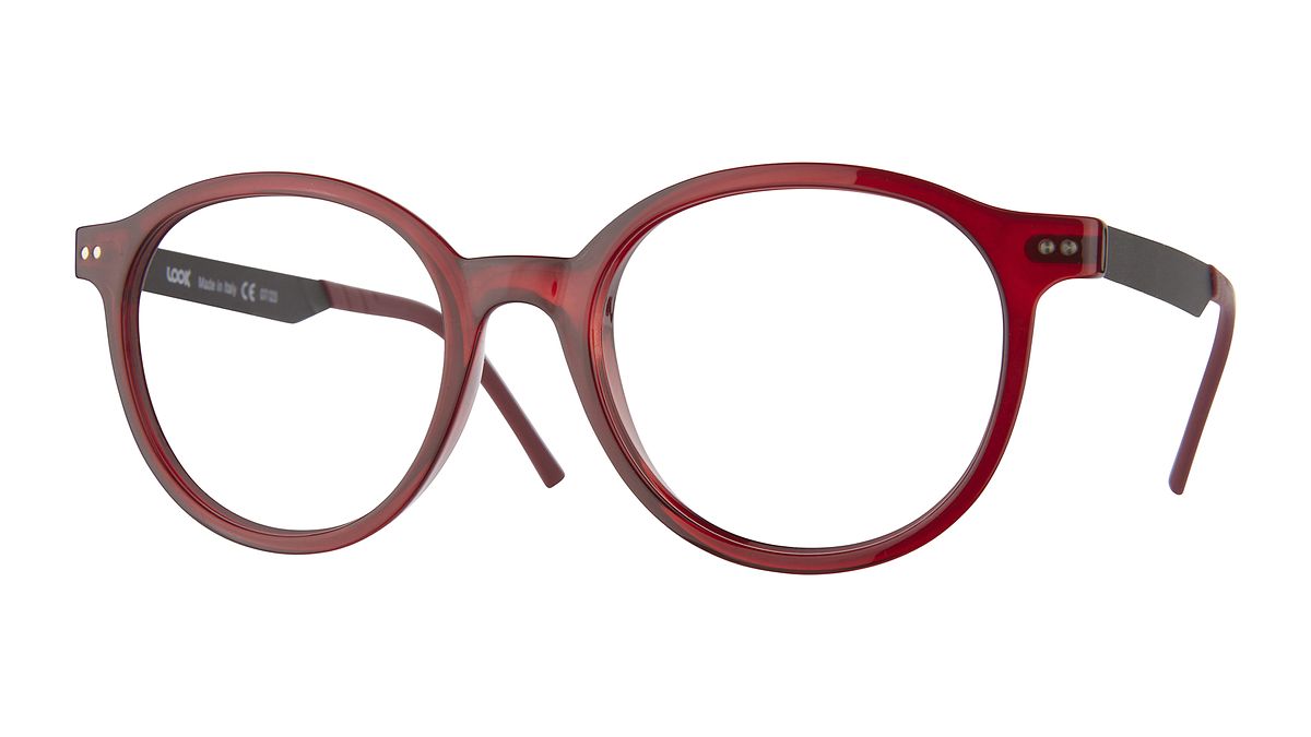 Farbe W4 - Glänzendes transparentes rotes Mittelteil. Bügel in mattem Anthrazit. Passende Bügelenden.