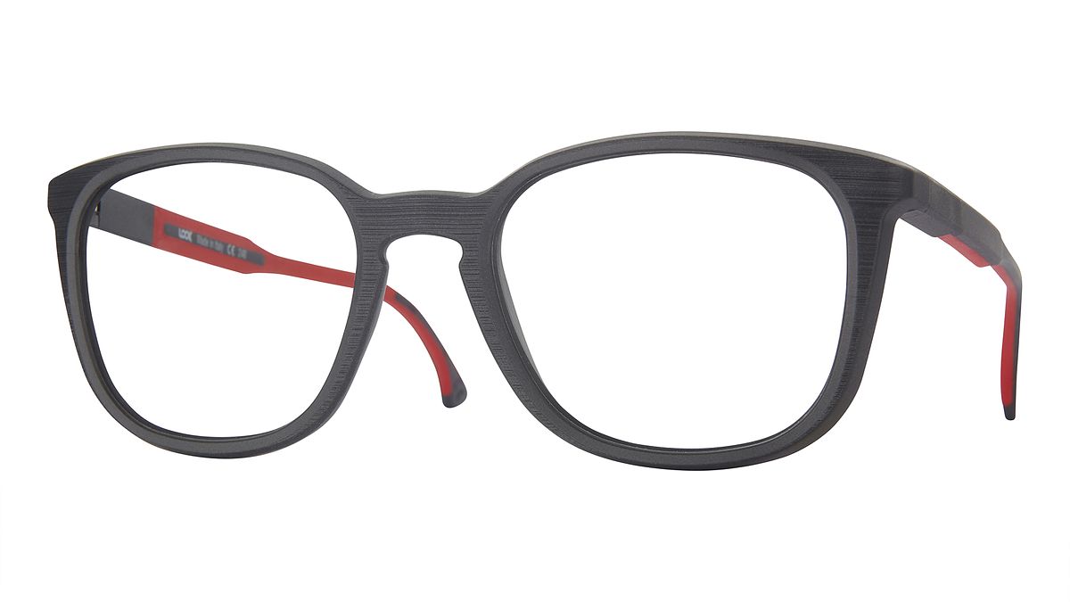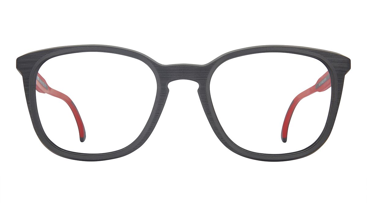 Farbe W4 - Mittelteil matt gebürstet in Anthrazitgrau. Bügel mit anthrazitgrauem Äußeren und rote Inneren.