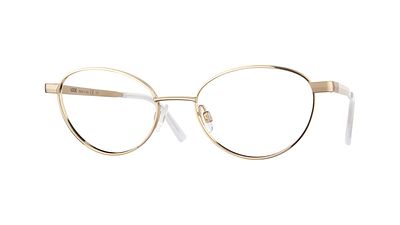 Farbe W3 - Transparente, glänzende grüne Mittelteil. Glänzende, hellgoldene Bügel. Passende Bügelenden.