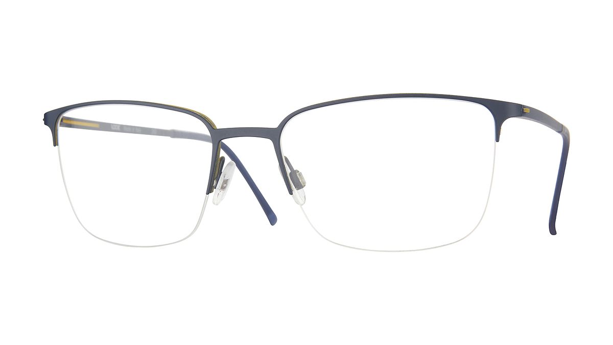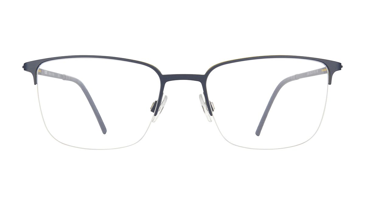Farbe M6 - Blaues Mittelteil mit Innenseite und gelbem Detail an den Endstücken, matte blaue Bügel mit passenden Bügelenden.
