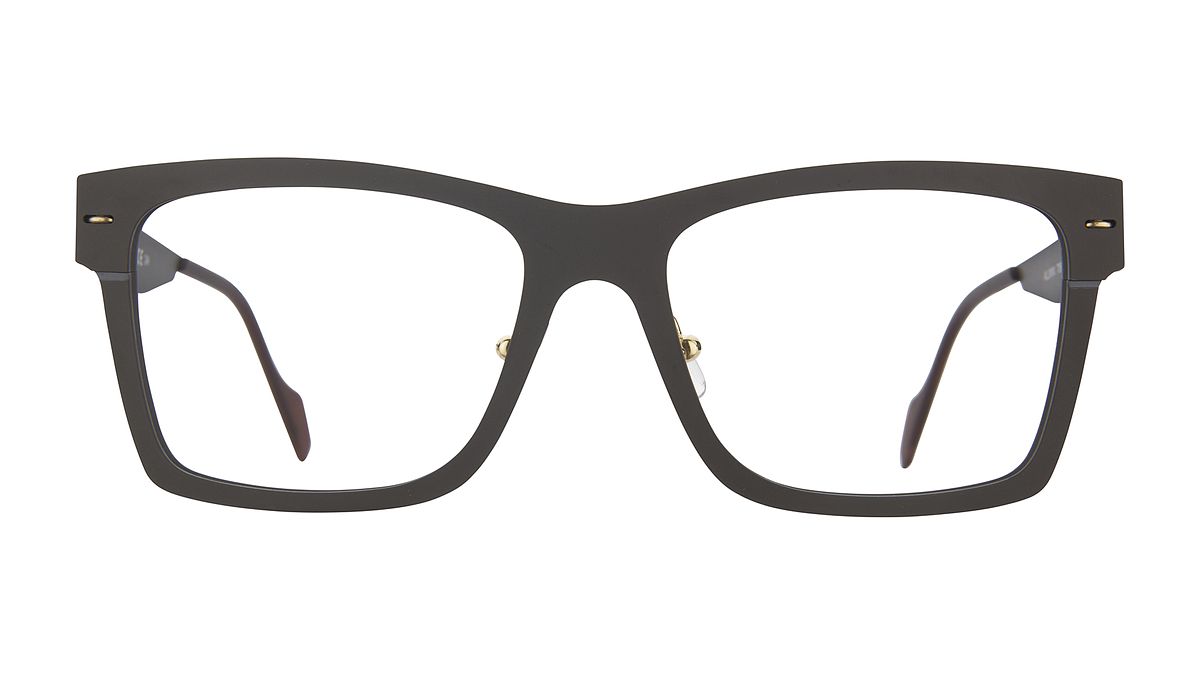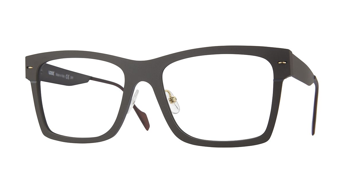 Farbe M2 - Mattes dunkelbraunes Mittelteil mit schwarzer/kohlegrauer Außendicke und Fälzen. Matte dunkelbraune Bügel mit schwarz/kohlegrauer Innenseite.