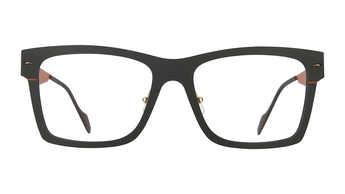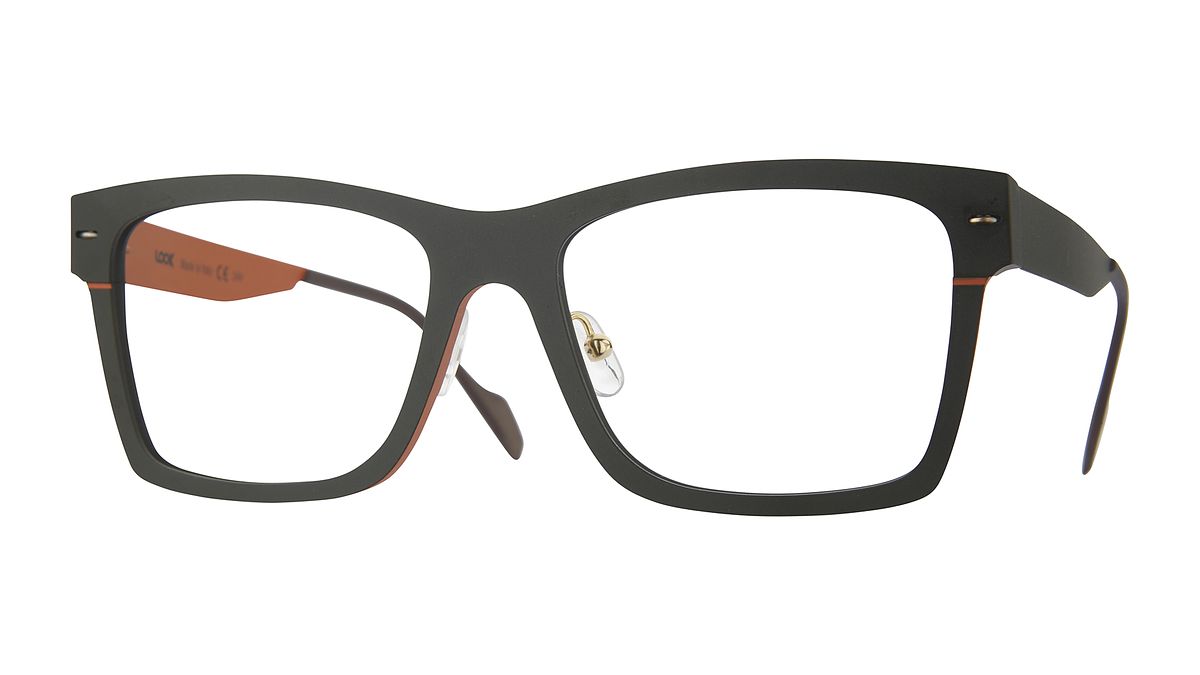Farbe M3 - Undurchsichtiges dunkelolivgrünes Mittelteil mit orangefarbener Außenseite und orangefarbenem Boden. Matte dunkelolivgrüne Vorderseite mit orangefarbener Innenseite.