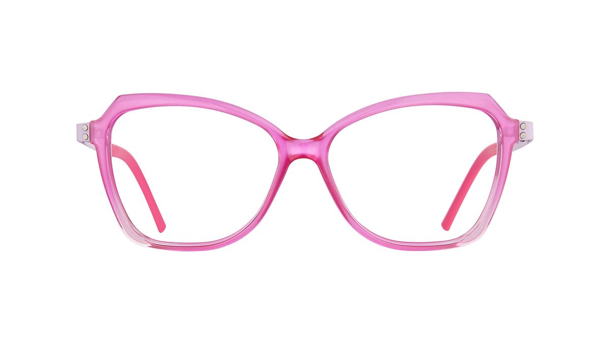 Farbe W2 - Vorderseite in Fuchsia-Rosa mit hellrosa Bügeln, die mit einer Schmetterlingsgrafik in Touchfarbe verziert sind. Passende Terminals.