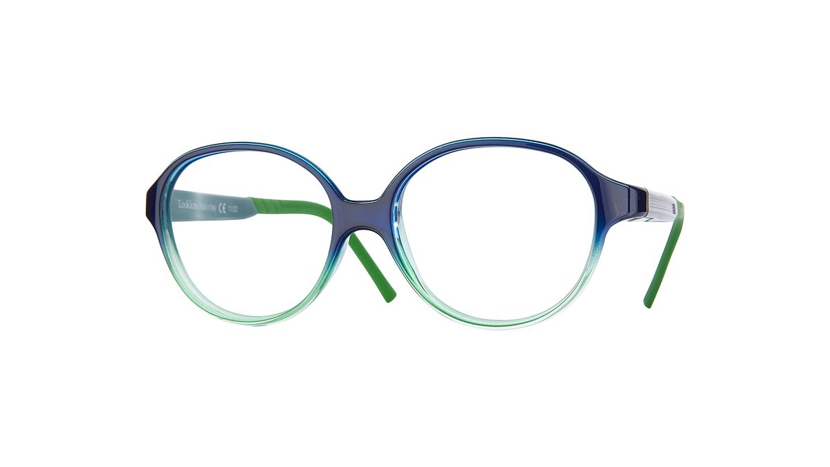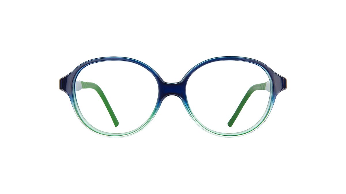 Farbe W1 - Glänzende dunkelblaue Mittelteil, schattiert in fluoreszierendem Grün. Salbeigrünes Interieur. Die Außenbügel sind mit einem nach unten gerichteten Geflecht und passenden grünen Bügelende verziert.