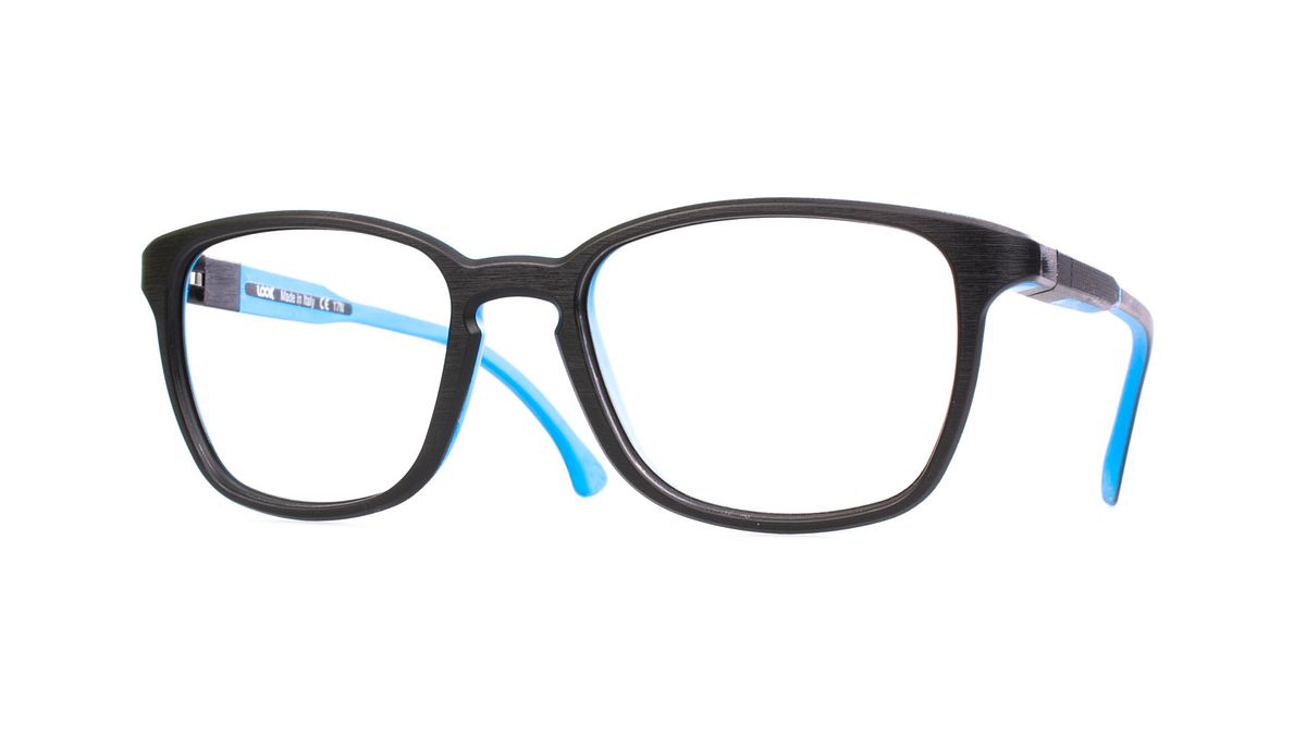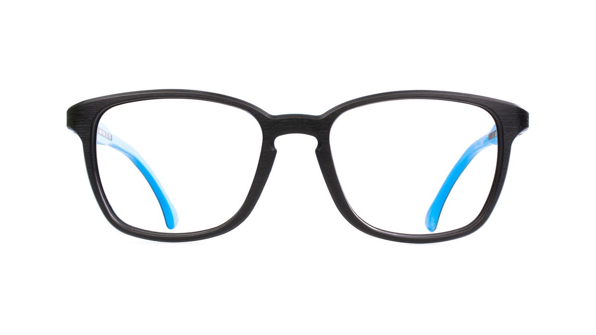 Farbe W1 - Gebürstete mattschwarze Front und Bügel mit himmelblauer Innenseite.