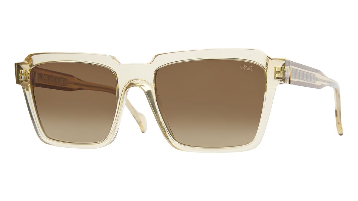 Coloration C4S - Glossy transparent champagne front and temples. Brown gradient lenses.