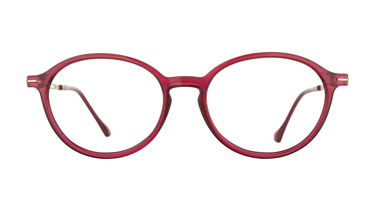 Coloration W2 - Transparent shiny fuchsia front, shiny rose gold temples and matching fuchsia temple-tips.