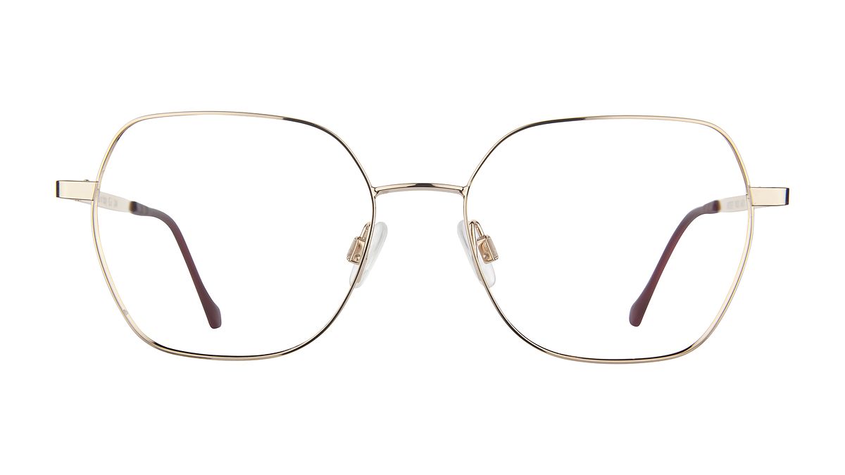 Coloration M1 - Polished rose gold. Burgundy red enamel and temple-tips.