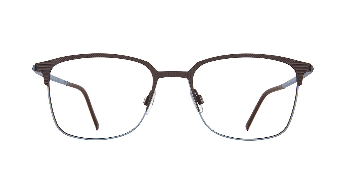 Coloration M2 - Front matte bark brown with texture and light blue metallic. Light blue metallic temples and matching tips.