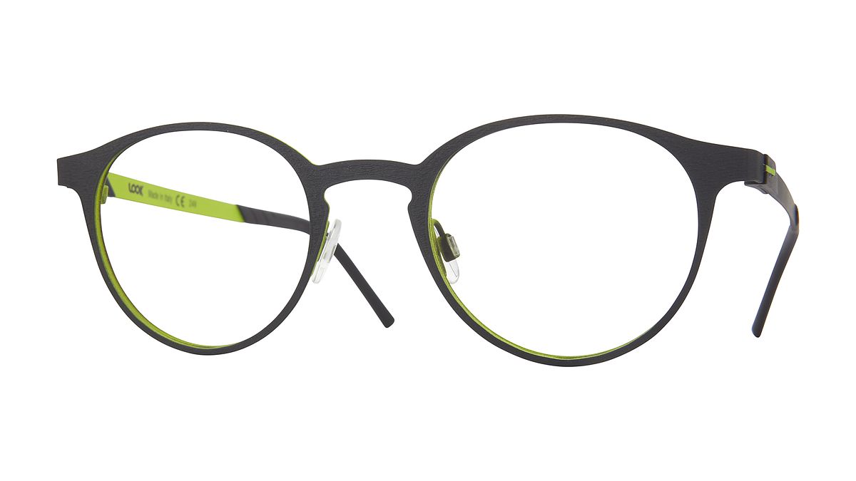 Coloration M1 - Dark atrancite gray front, fluo lime yellow interior. Black hinge and black temple-tips.