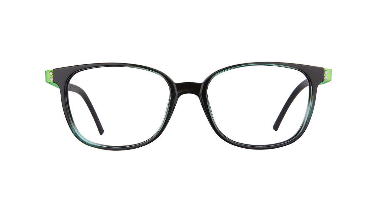 Coloration W15 - Midnight green front with neon green temples and matching finials.
