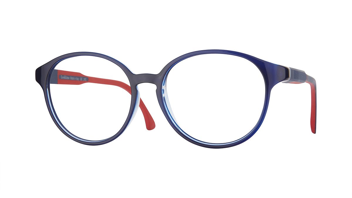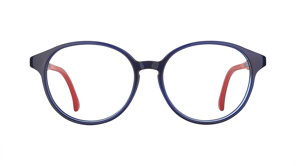 Coloration W7 - Glossy midnight blue front with crystal interior. Temples with midnight blue exterior and red interior.