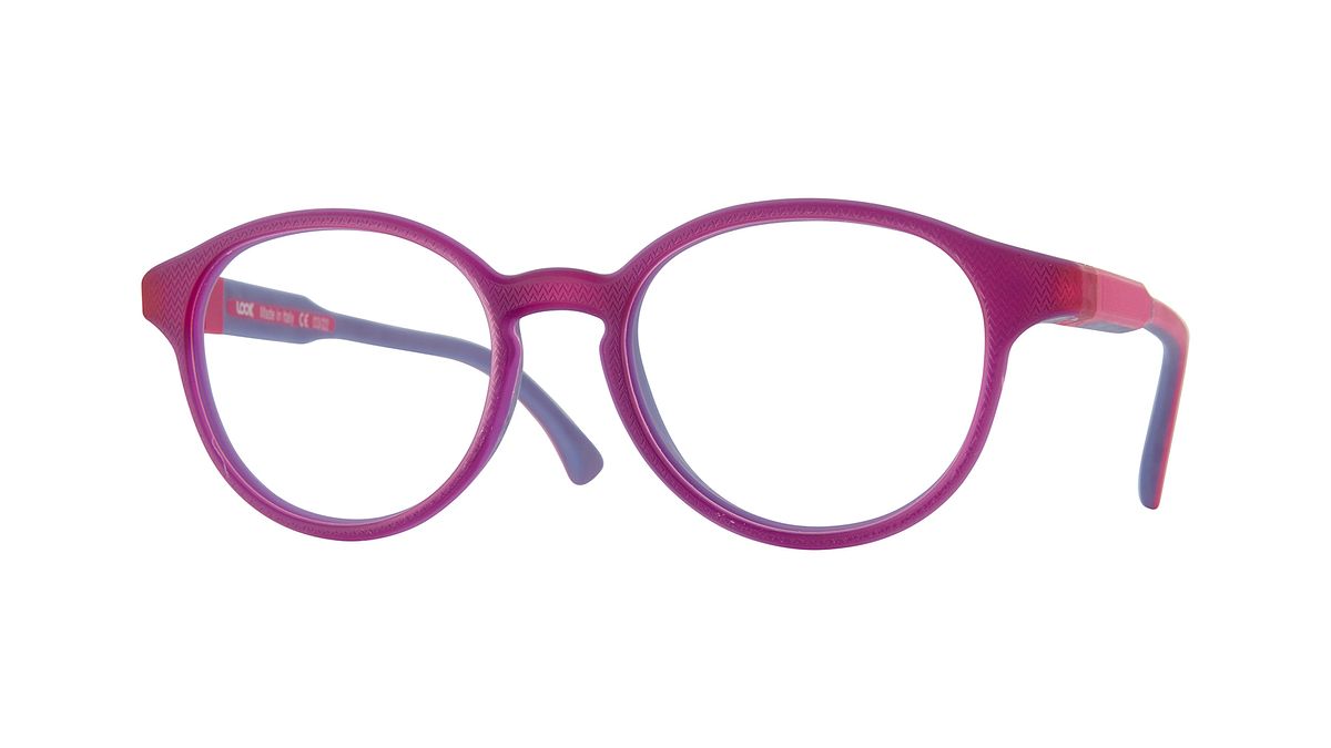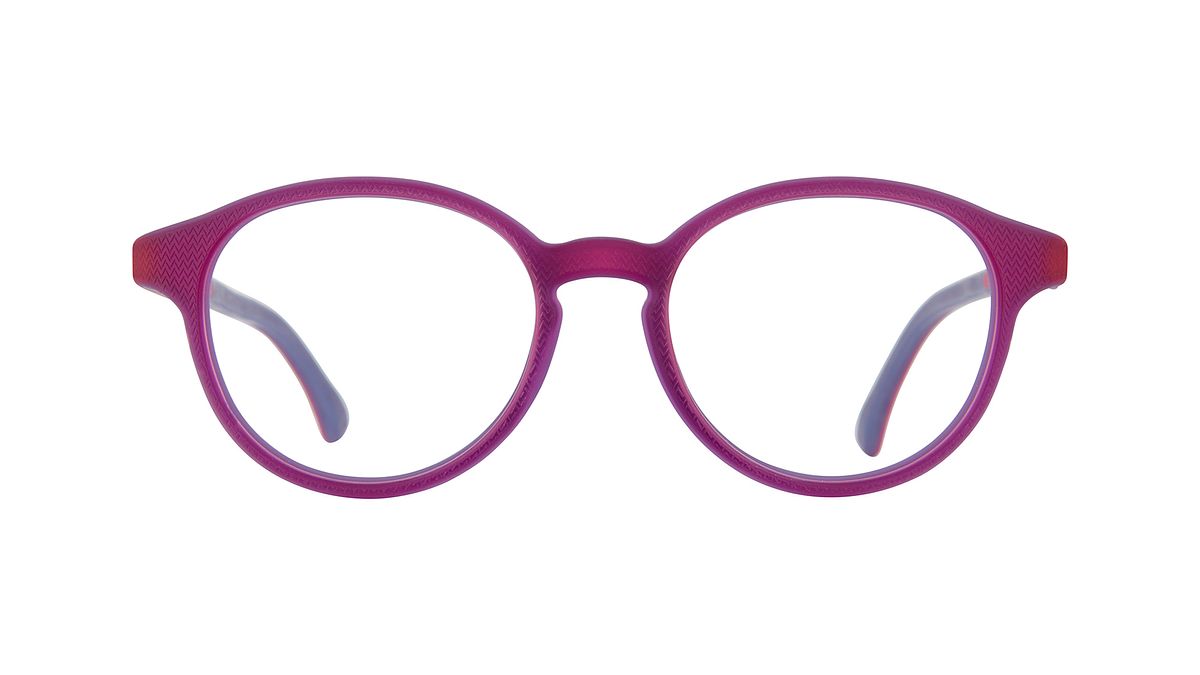 Coloration W7 - Transparent fuchsia front and fuchsia temples embellished with a zig-zag texture with wisteria interior.