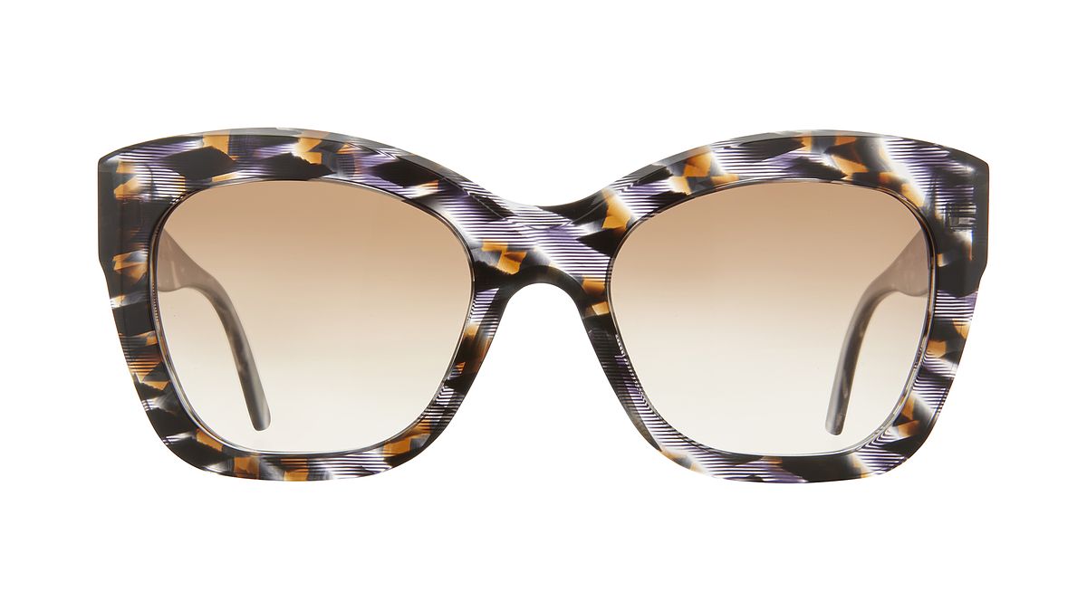 Colorear C3S - Frente y varillas de color marrón habana y transparente con elementos geométricos. Lentes marrones sombreadas.
