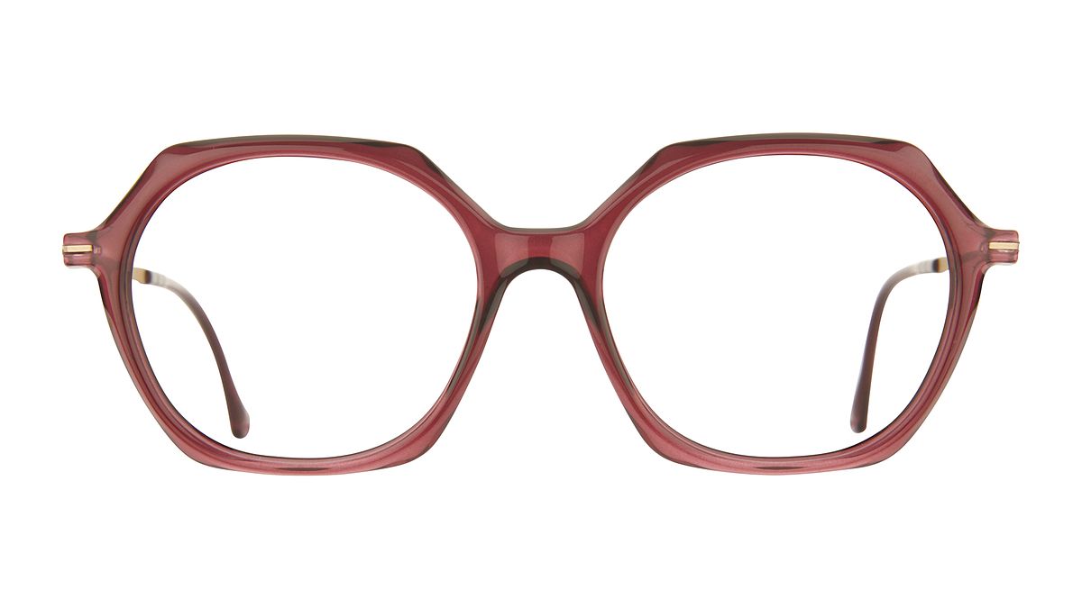 Colorear W2 - Frente transparente brillante color cereza.Varillas mate doradas claras. Terminales a juego.