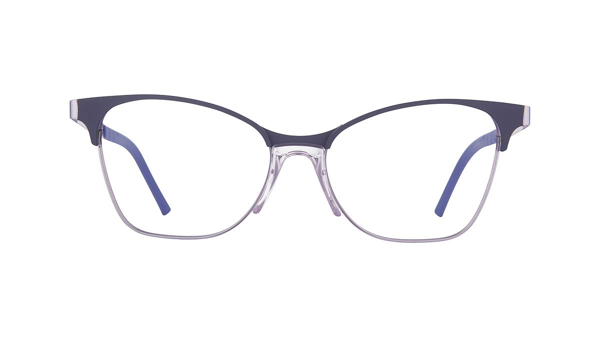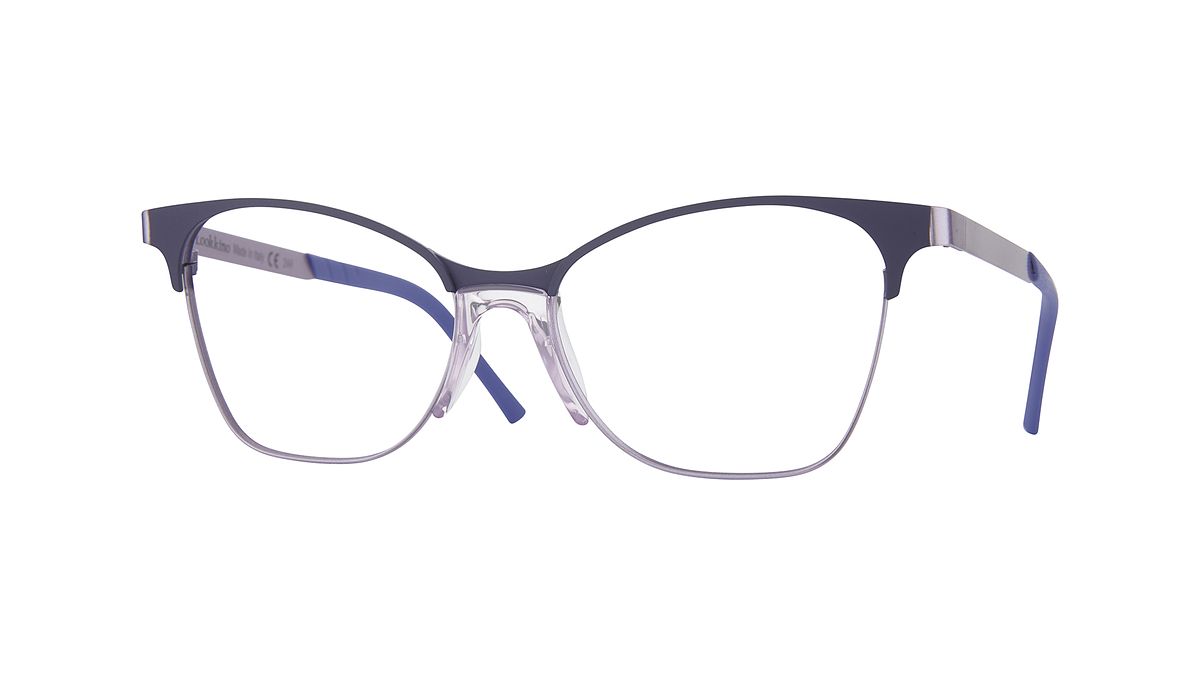 Colorear M3 - Frontal violeta mate combinado con lila metalizado. Varillas metalizadas lila. Terminales a tono con el frente violeta mate. Plaqueta nasal violeta transparente.