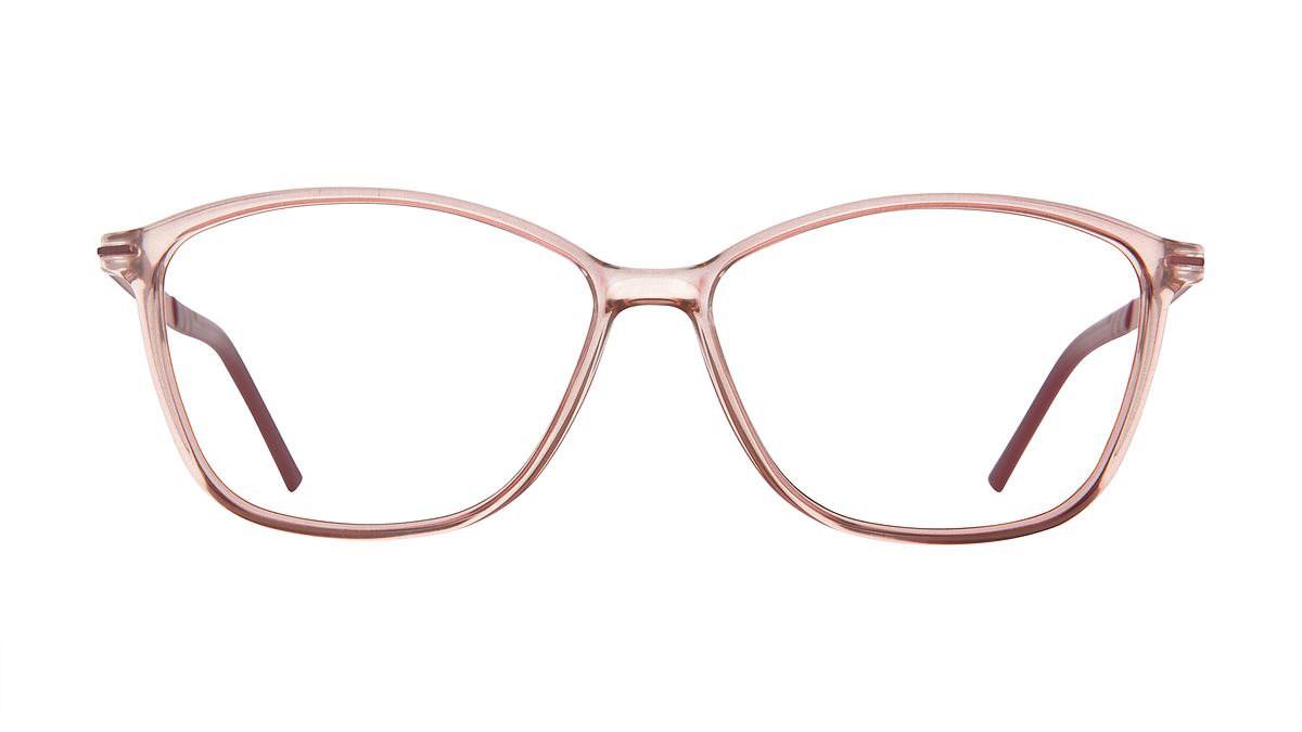 Couleur W4 - Face transparente et brillante rose antique. Branches rouge prune avec intérieur rose. Manchones assorties.