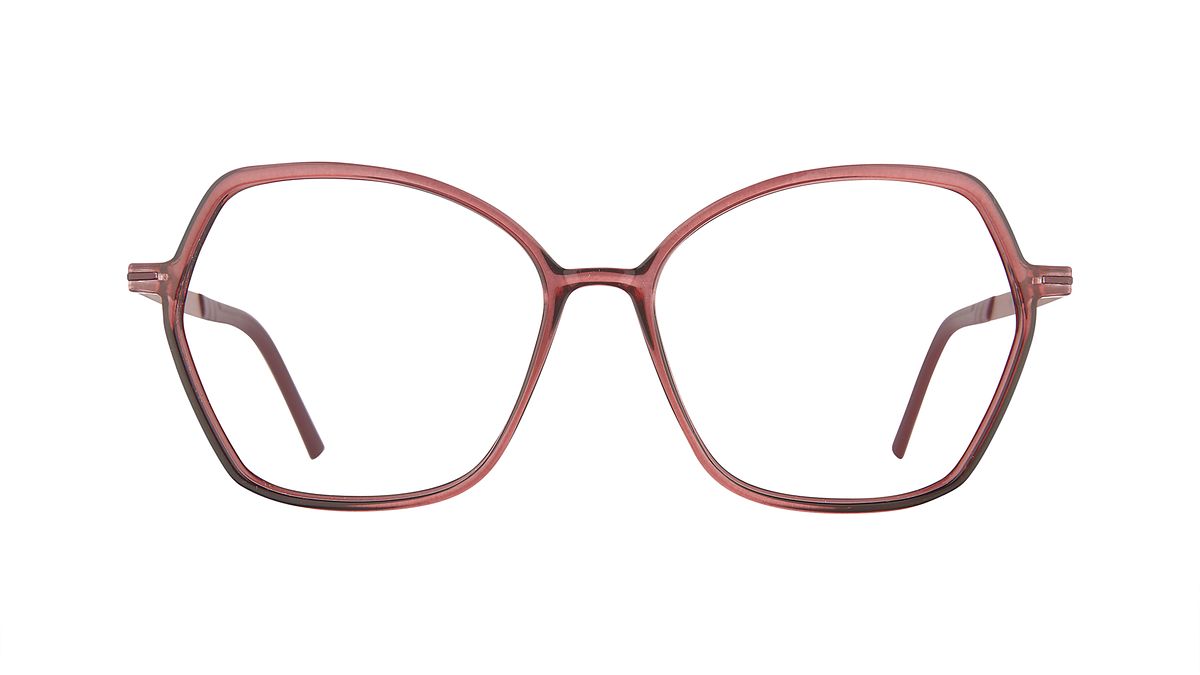 Couleur W4 - Face rouge prune transparente et brillante. Branches extérieures rouge prune et intérieures roses. Manchones assortis.