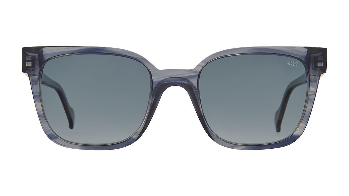 Couleur C3S - Face et branches en havane brillant strié de bleu. Verres dégradés bleus.