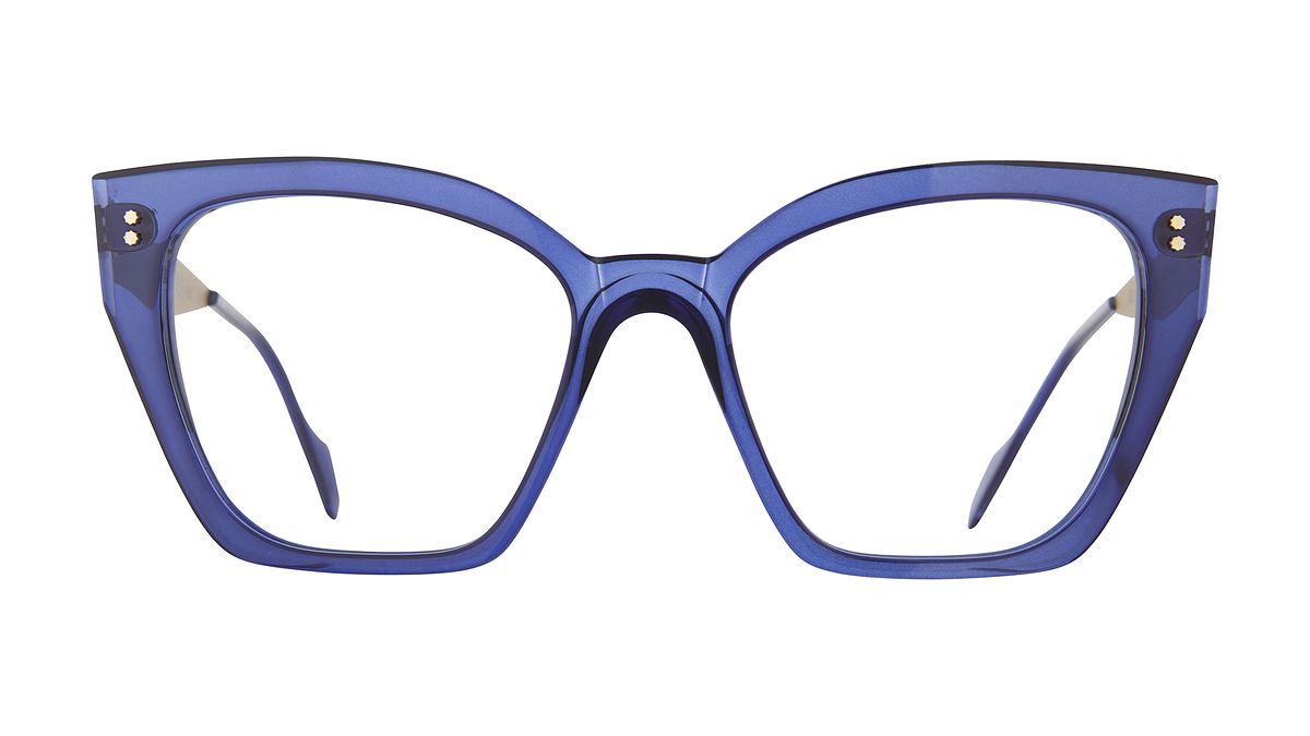 Couleur W3 - Face transparente bleu indigo avec branches or mat. Embouts bleu indigo.