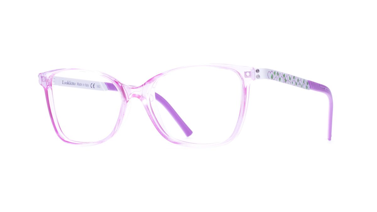 Couleur W300 - Face violet lavande transparent brillant avec branches blanches enrichies de graphismes en forme de cœur tactiles et de bornes assorties au Face.