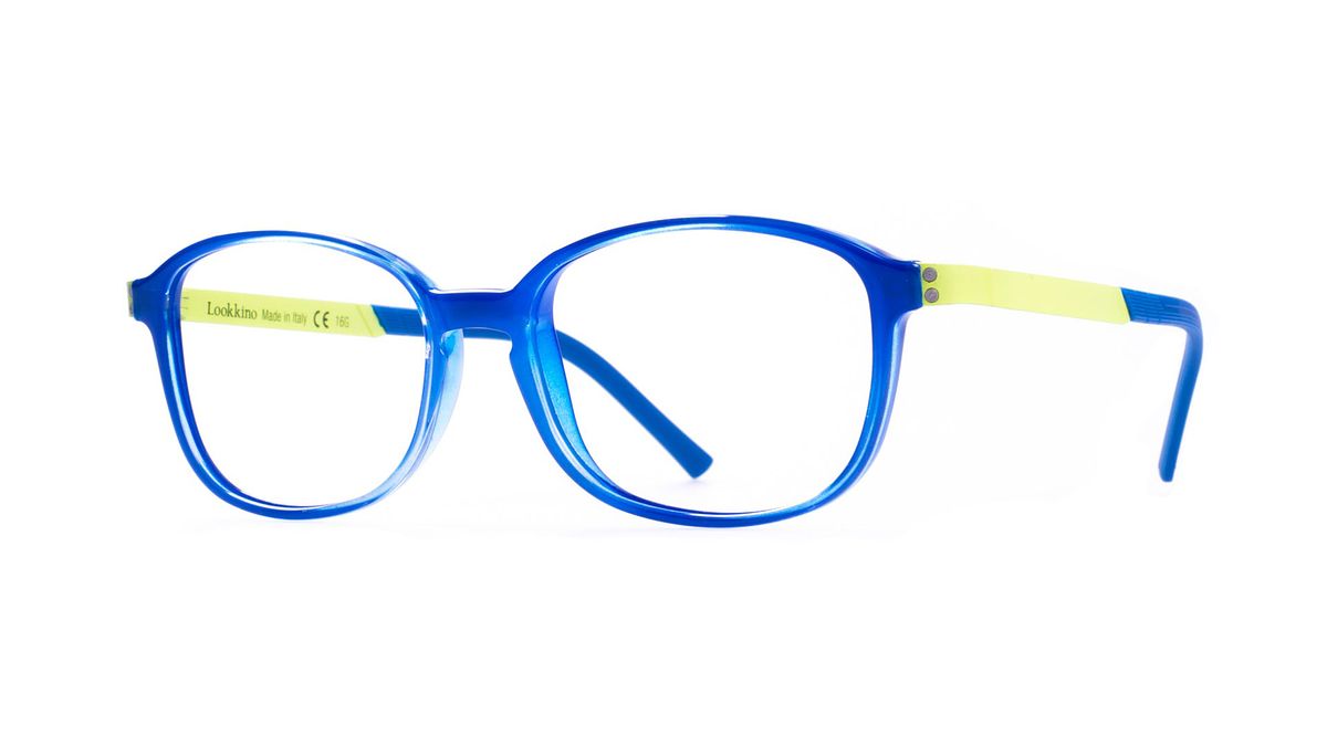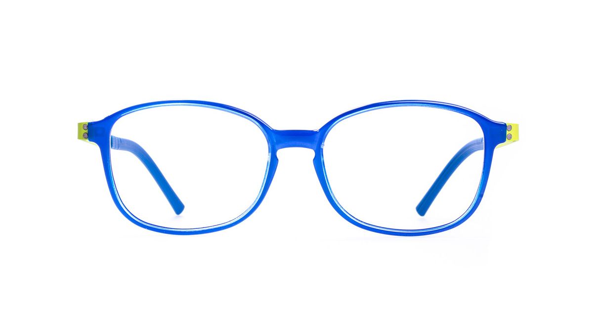 Couleur W301 - Face Face bleu transparent brillant avec branches et bornes vert citron mat assorties à la face.