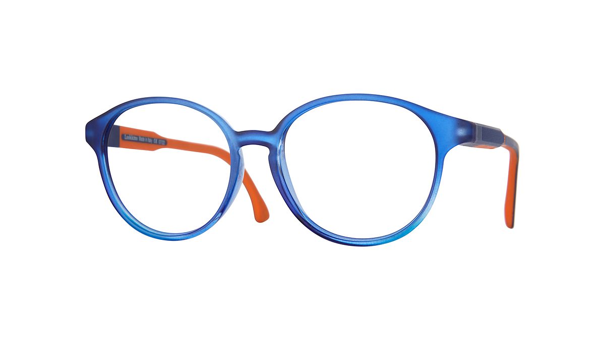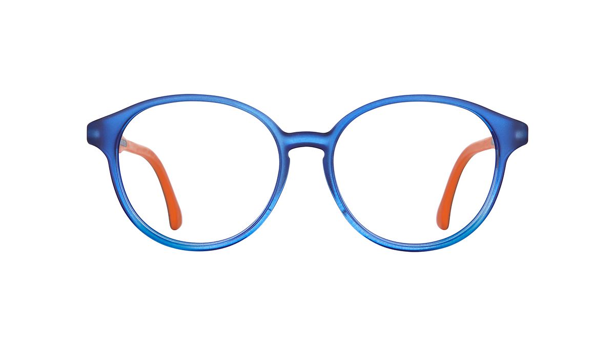 Couleur W4 - Frontal bleu transparent opaque dégradé transparent brillant. Branches extérieures bleu foncé ornées d'une texture en zigzag et d'un intérieur orange.