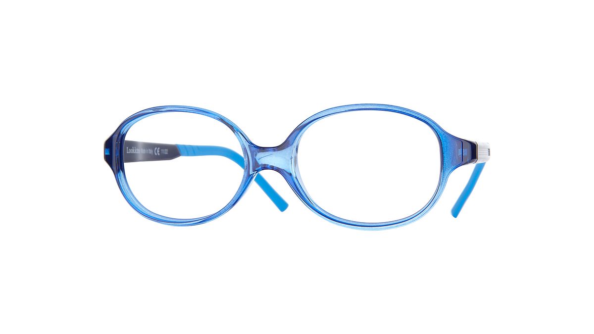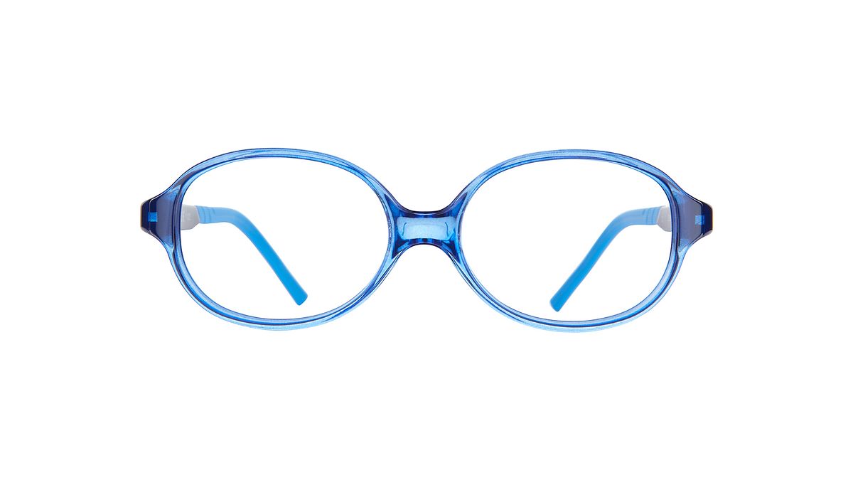 Couleur W1 - Face avant bleue transparente et brillante. Les branches bleu foncé sont agrémentées d'un tissage descendant et de manchons bleus assortis.