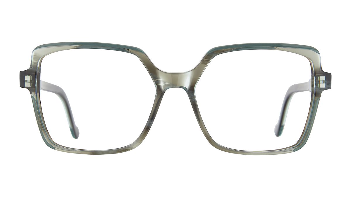 Colorazione C3 - Frontale e aste verde acqua striato trasparente lucido, dettagli verde salvia.