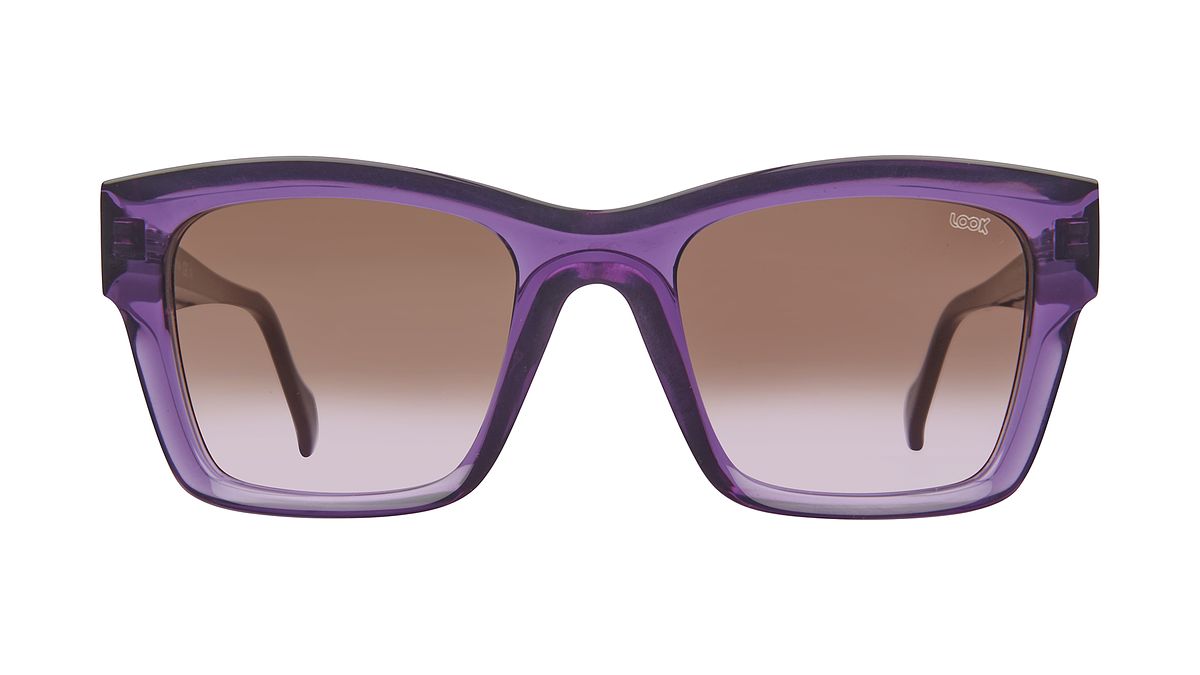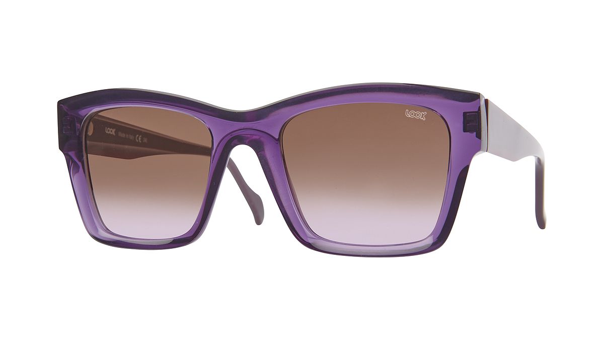 Colorazione C3S - Frontale viola trasprente lucido, aste viola lucido. Lenti sfumato marrone/viola.