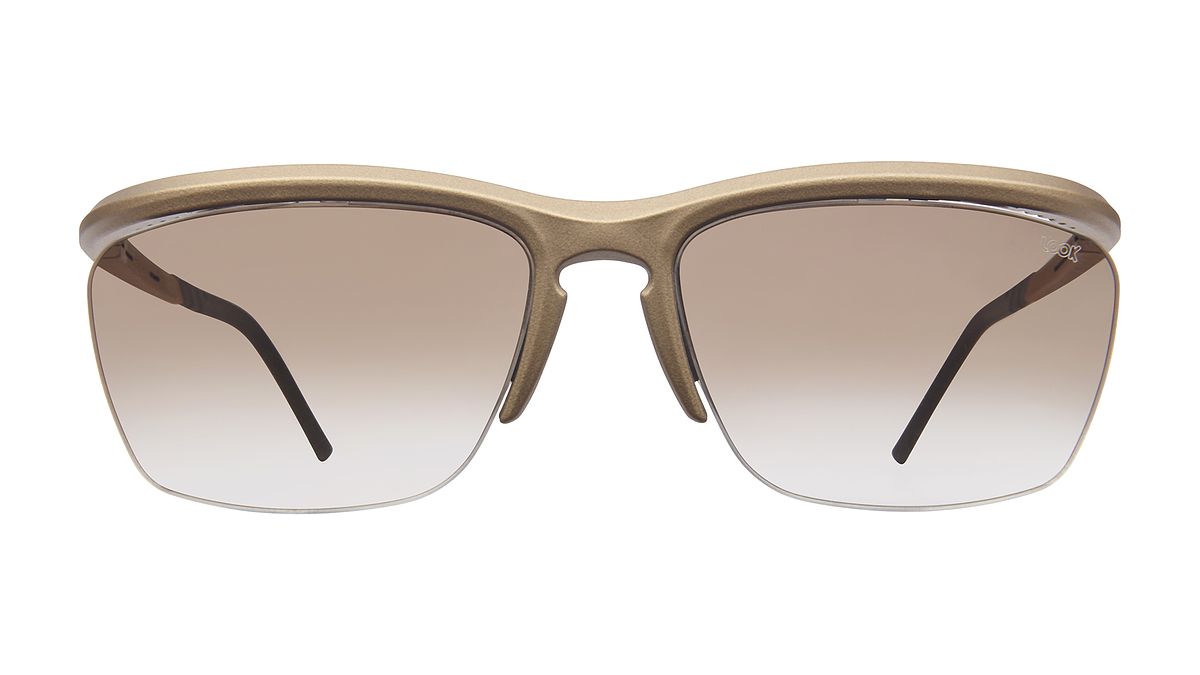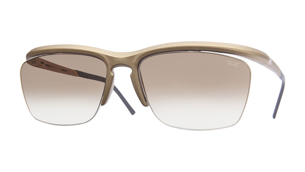 Colorazione W4S - Frontale rame metalizzato opaco e smalto nero. Terminali nero. Lente specchiata sfumata bronzo.
