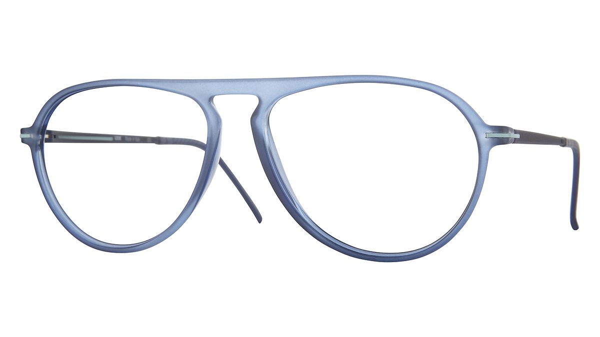 Colorazione W2 - Frontale blu trasparente lucido, aste blu trasparenti opache con dettagli in smalto azzurro, terminali blu in abbinamento.