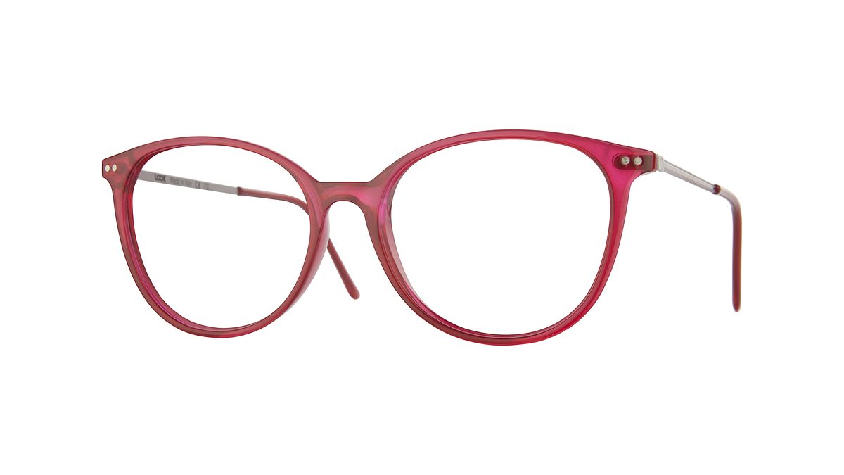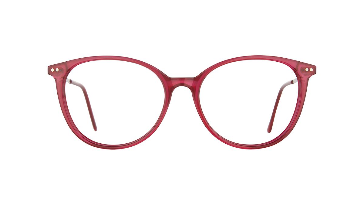 Colorazione W5 - Frontale rosso lucido trasparente con aste rosa malva. Terminali in abbinamento.