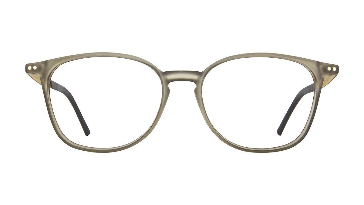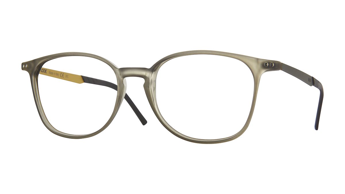 Colorazione W5 - Frontale grigio-verde opalino. Aste verde oliva e giallino opache con terminali neri opachi.