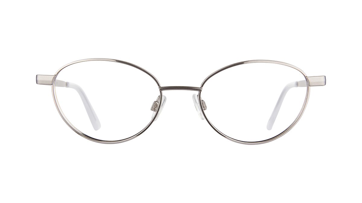 Colorazione M3 - Frontale color acciaio lucido con riflessi rosa, aste color acciaio opaco con terminali trasparenti opachi bianchi.