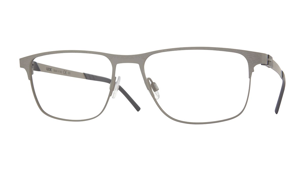 Colorazione M6 - Frontale greige opaco con texture e acciaio opaco. Aste greige opache con terminali grigi scuri.