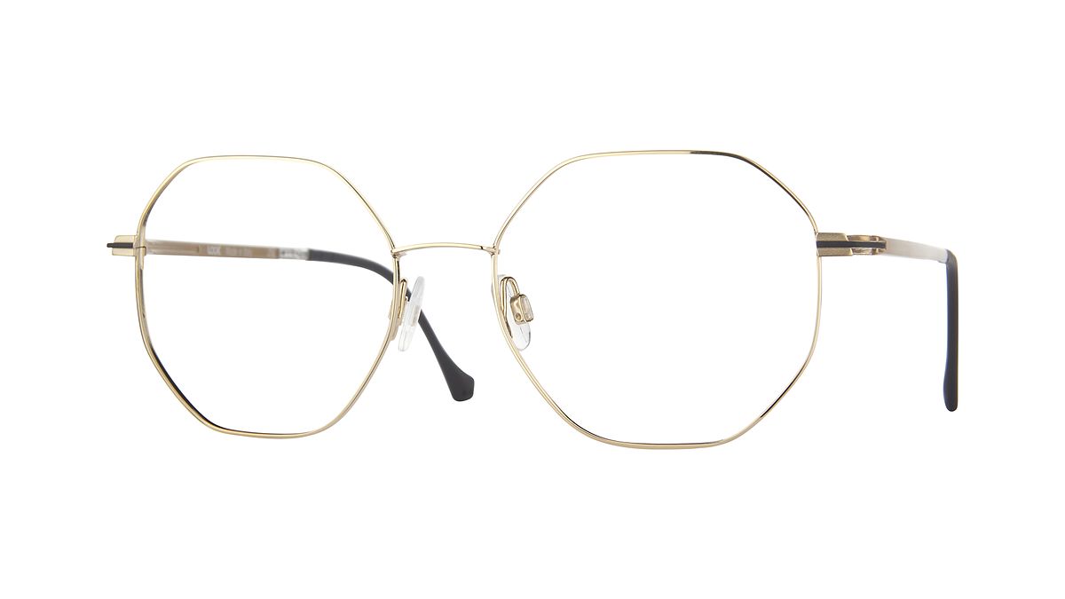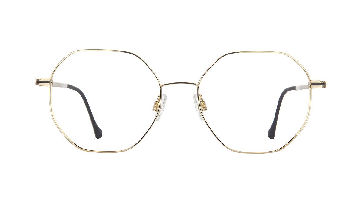 Colorazione M5 - Frontale oro chiaro lucido con dettaglio nero, esterno aste oro chiaro, interno cristallo lucido con terminali neri opachi.