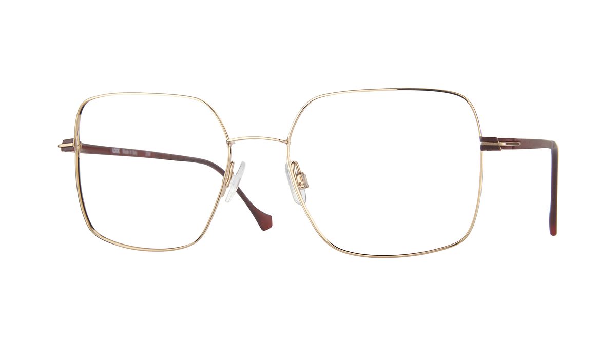 Colorazione M7 - Frontale oro rosa lucido, aste bordeaux opaco trasparente con terminali in abbinamento.