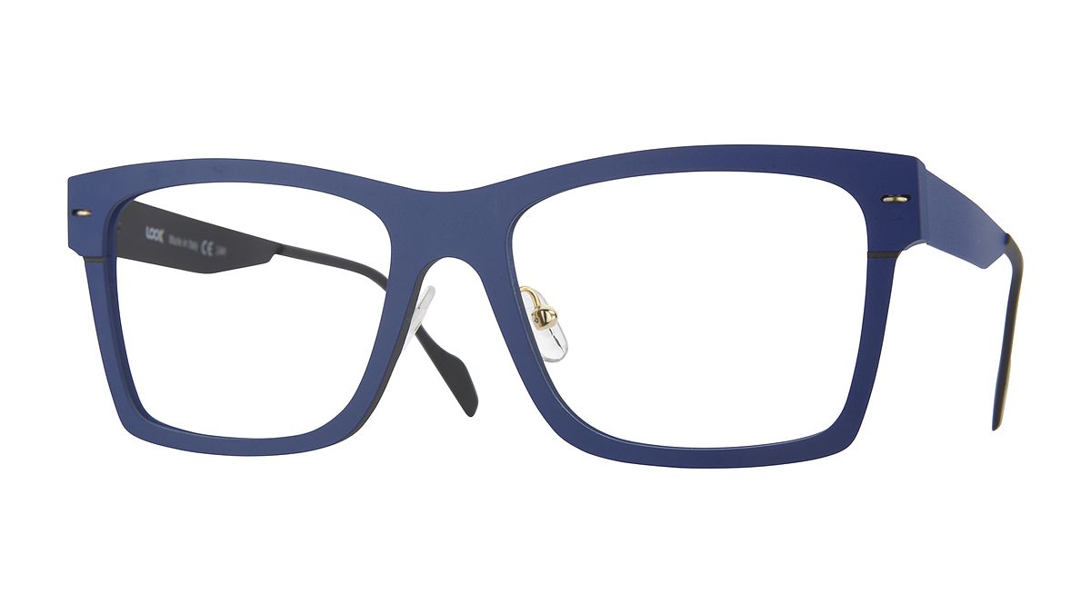 Colorazione M4 - Frontale blu brillante opaco con spessore esterno e ribassi nero carbone. Aste blu brillante opaco con interno nero carbone.