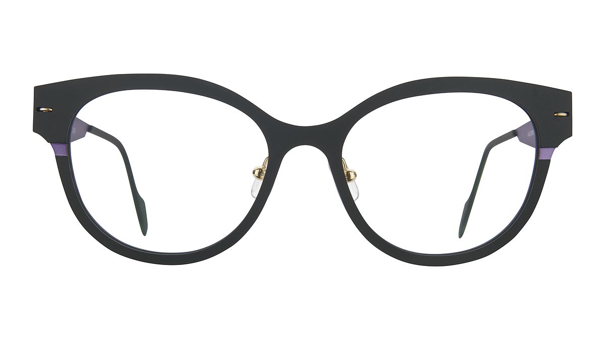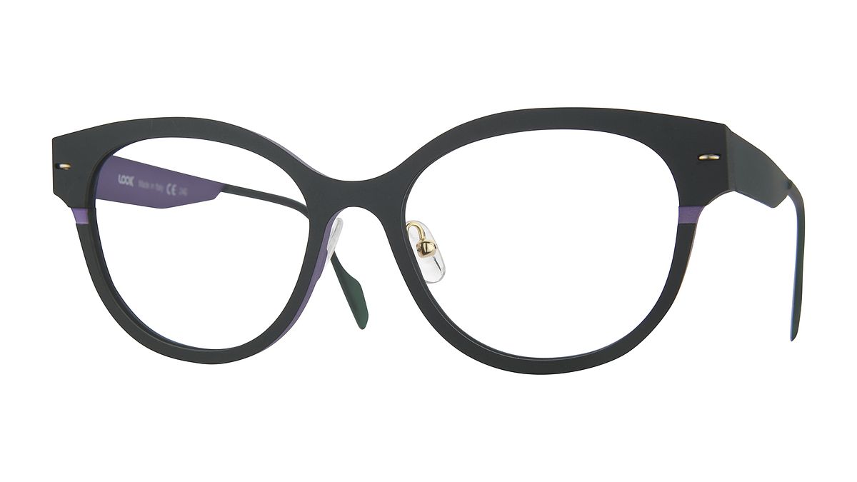 Colorazione M4 - Frontale verde scuro opaco con spessore esterno e ribassi viola lilla. Aste verde scuro opaco con interno viola lilla.