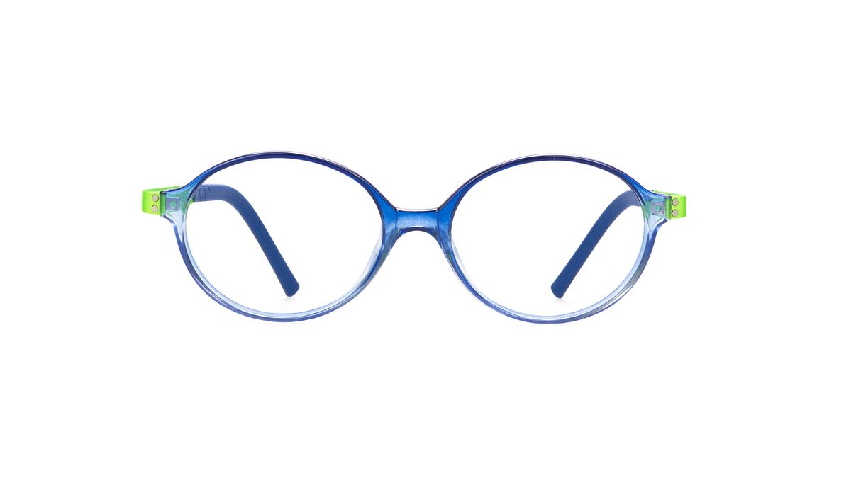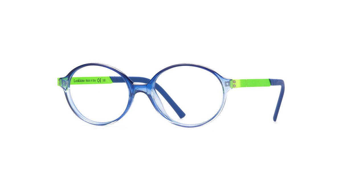 Colorazione W1 - Frontale blu trasparente con aste verde fluo e terminali abbinati.