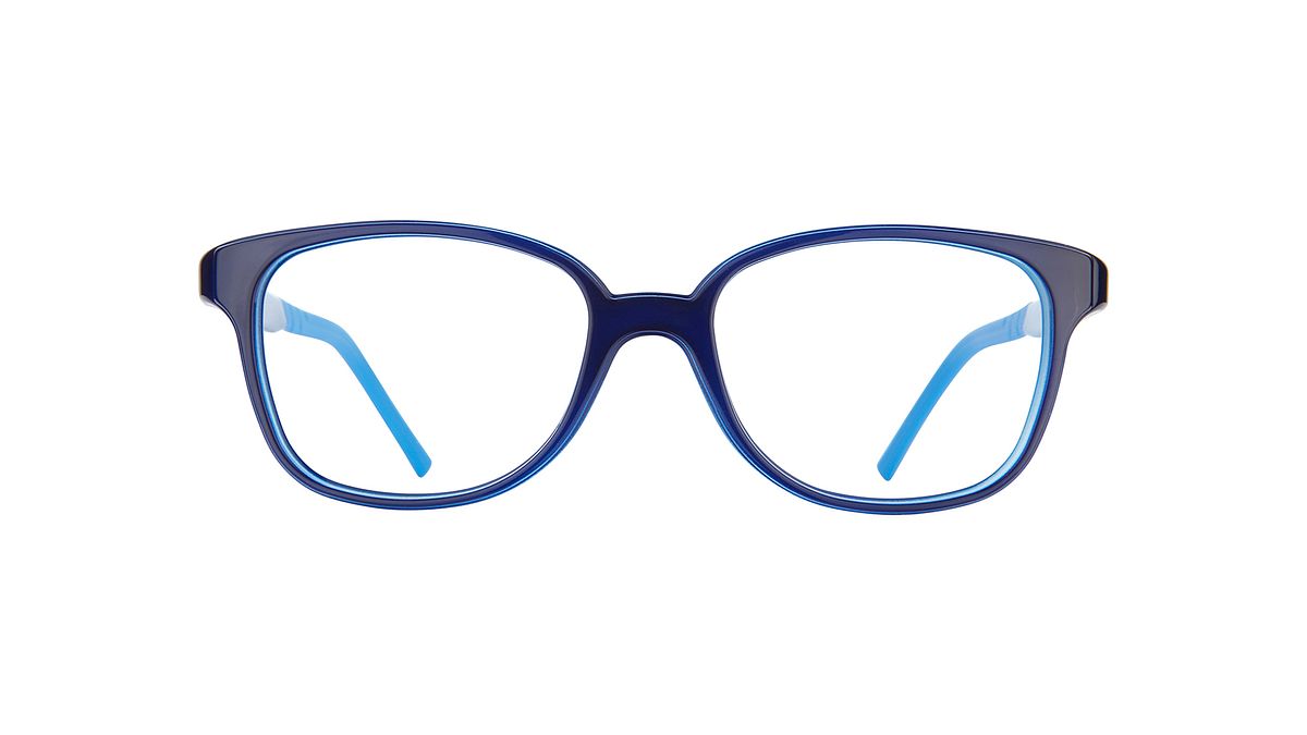 Colorazione W1 - Esterno del frontale e aste blu scuro lucido. Interno in soft blue. Esterno aste impreziosito da una trama a in ribasso e terminali azzurro cielo in abbinamento.
